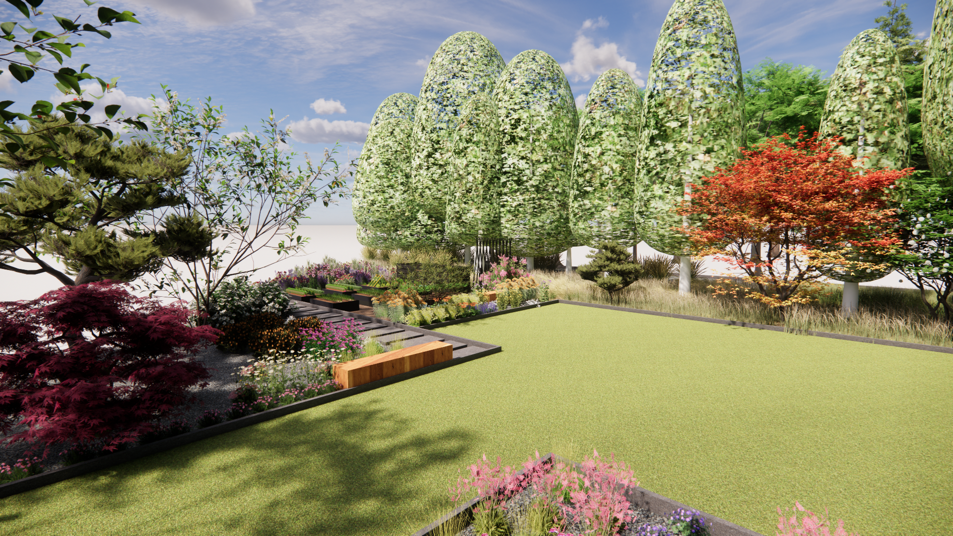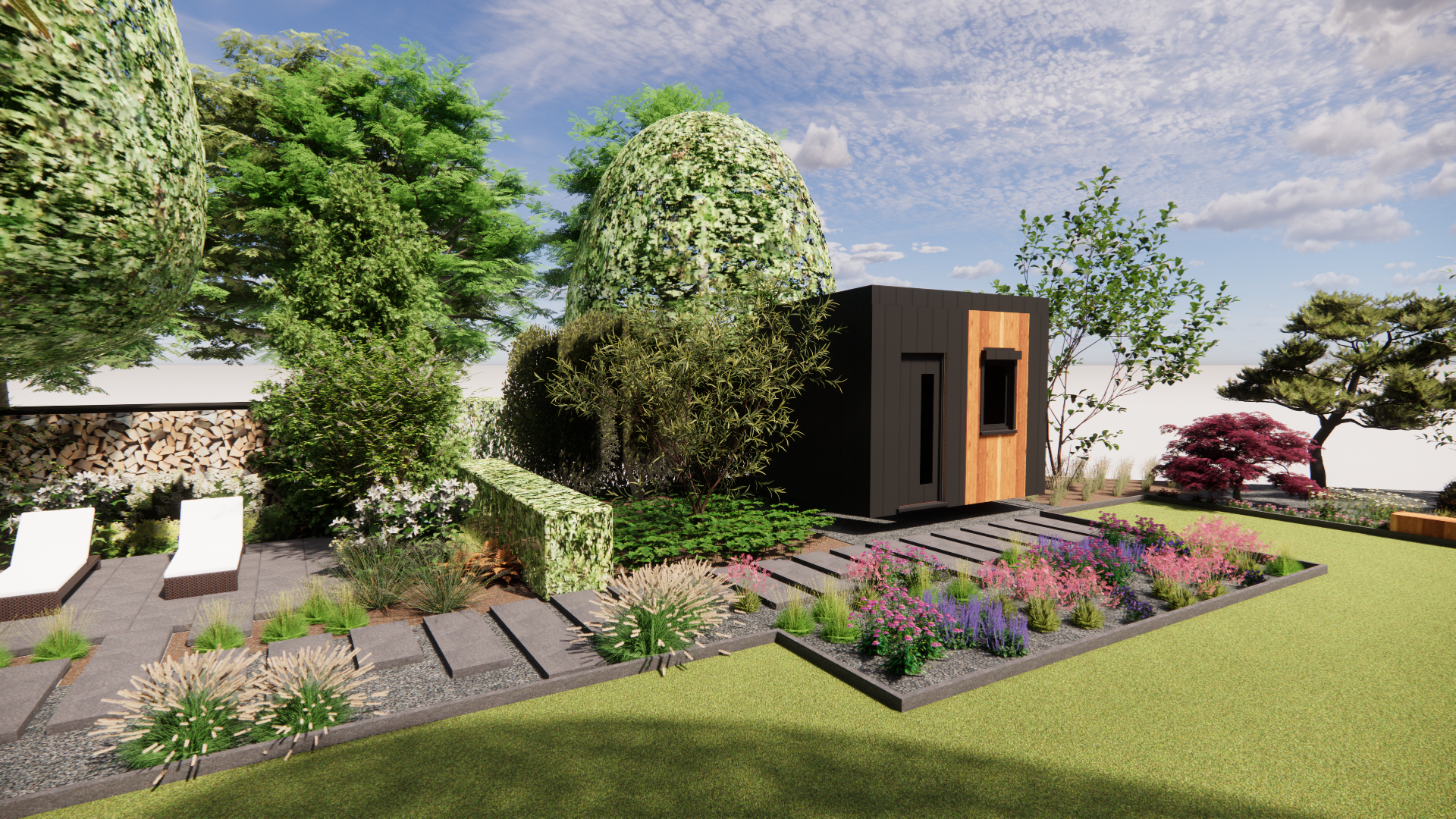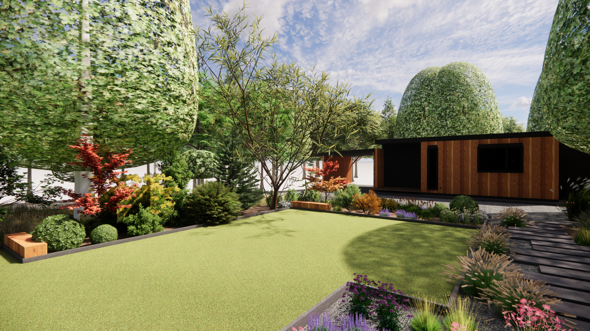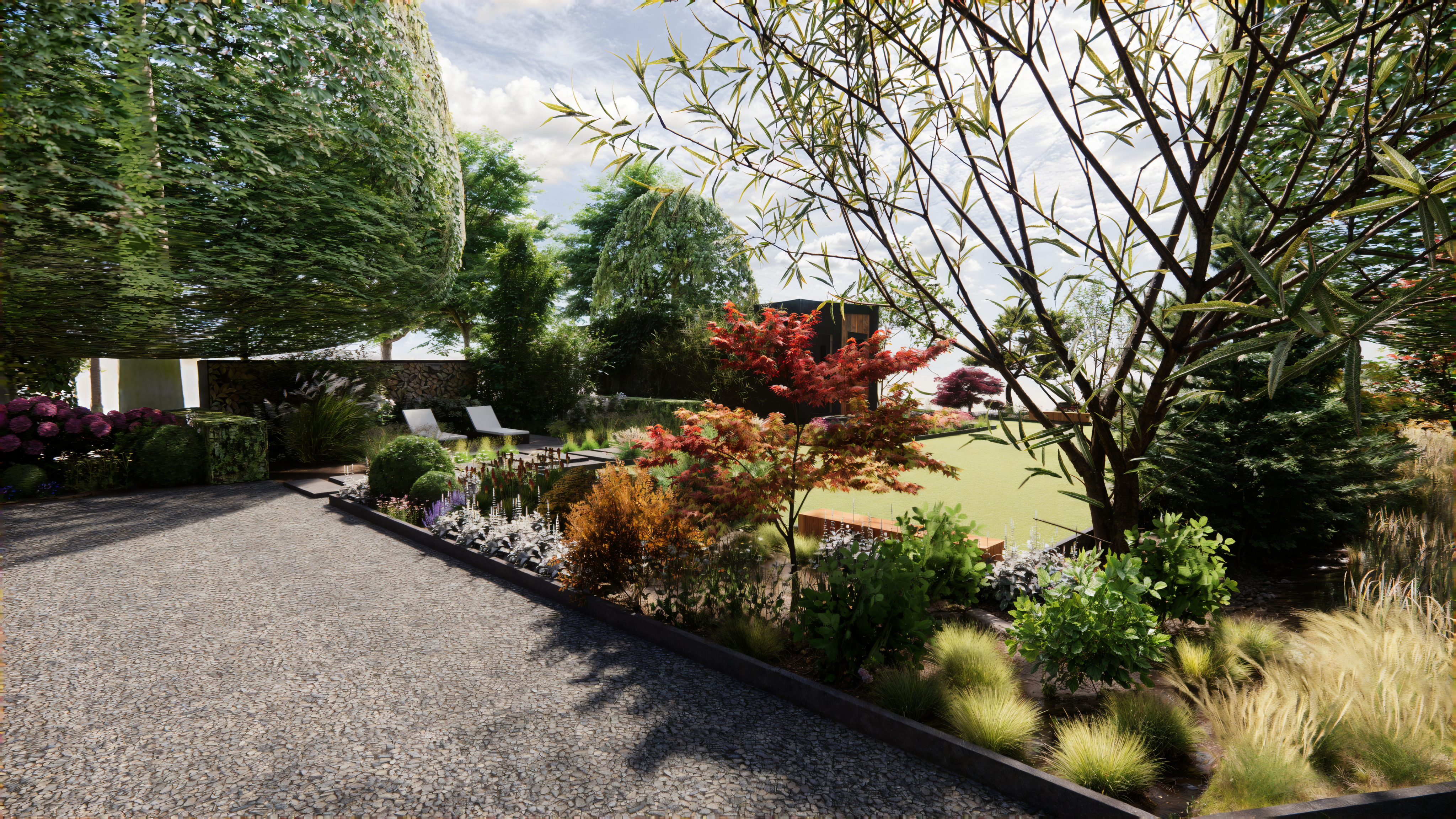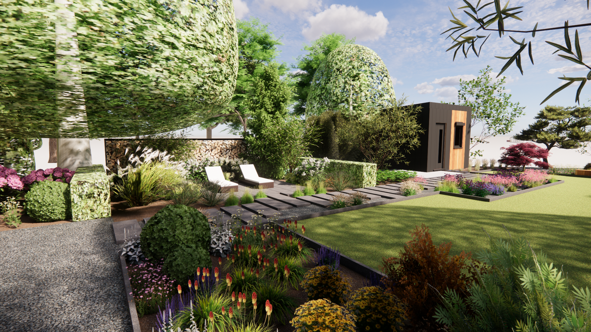 Koncepcja zakłada stworzenie ogrodu naturalnego, w którym chce się przebywać. Główne cele, które zostały zrealizowane w koncepcji to stworzenie zagajnika