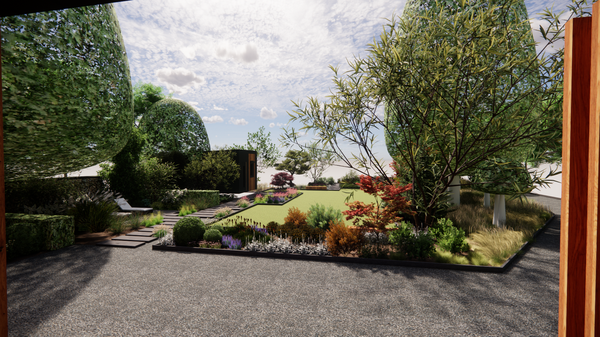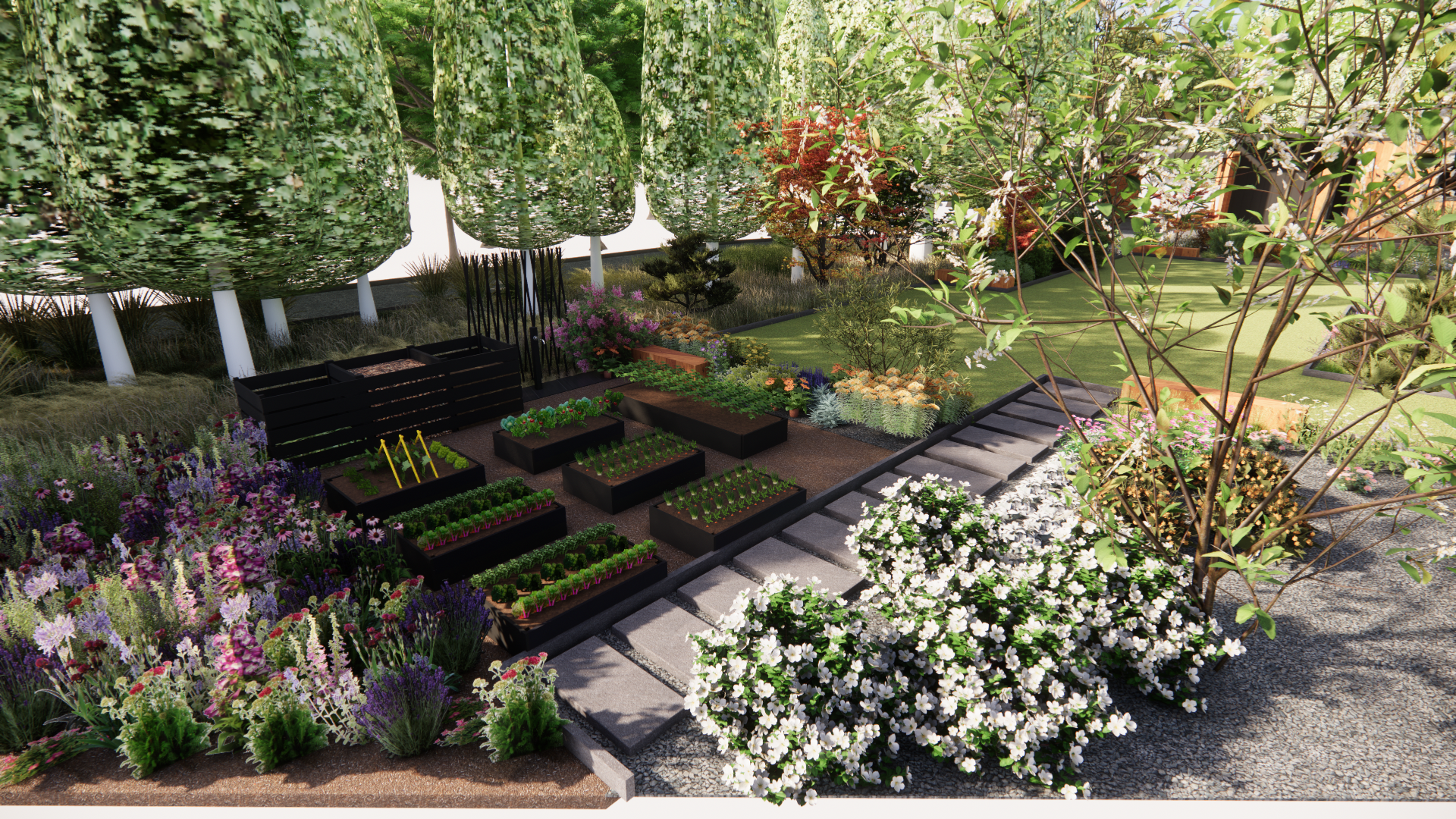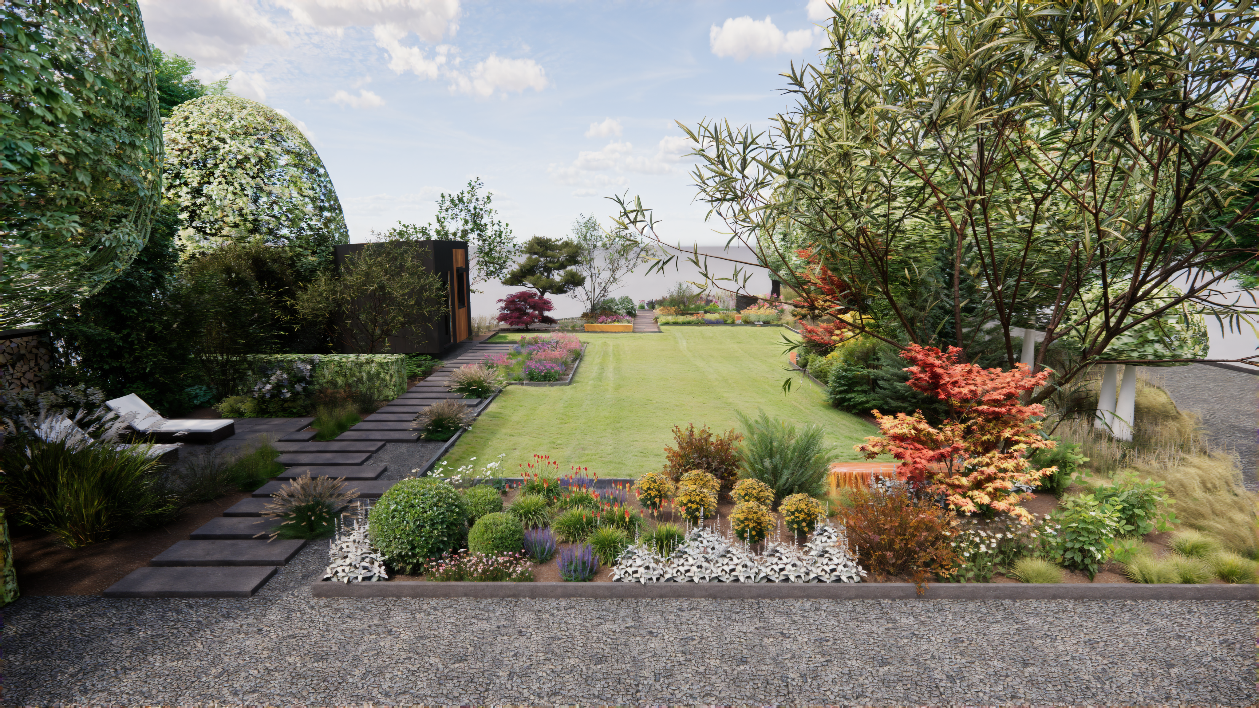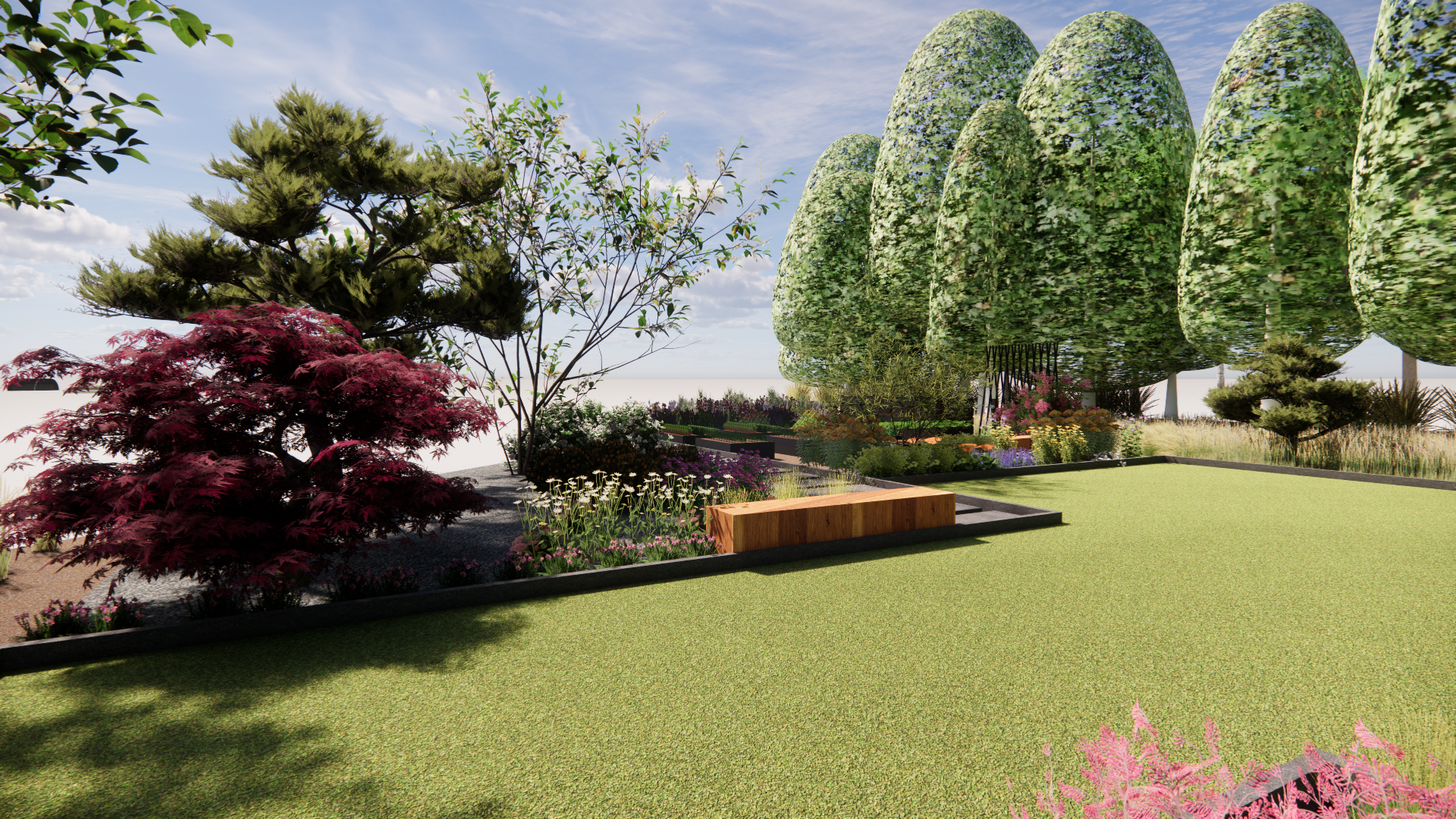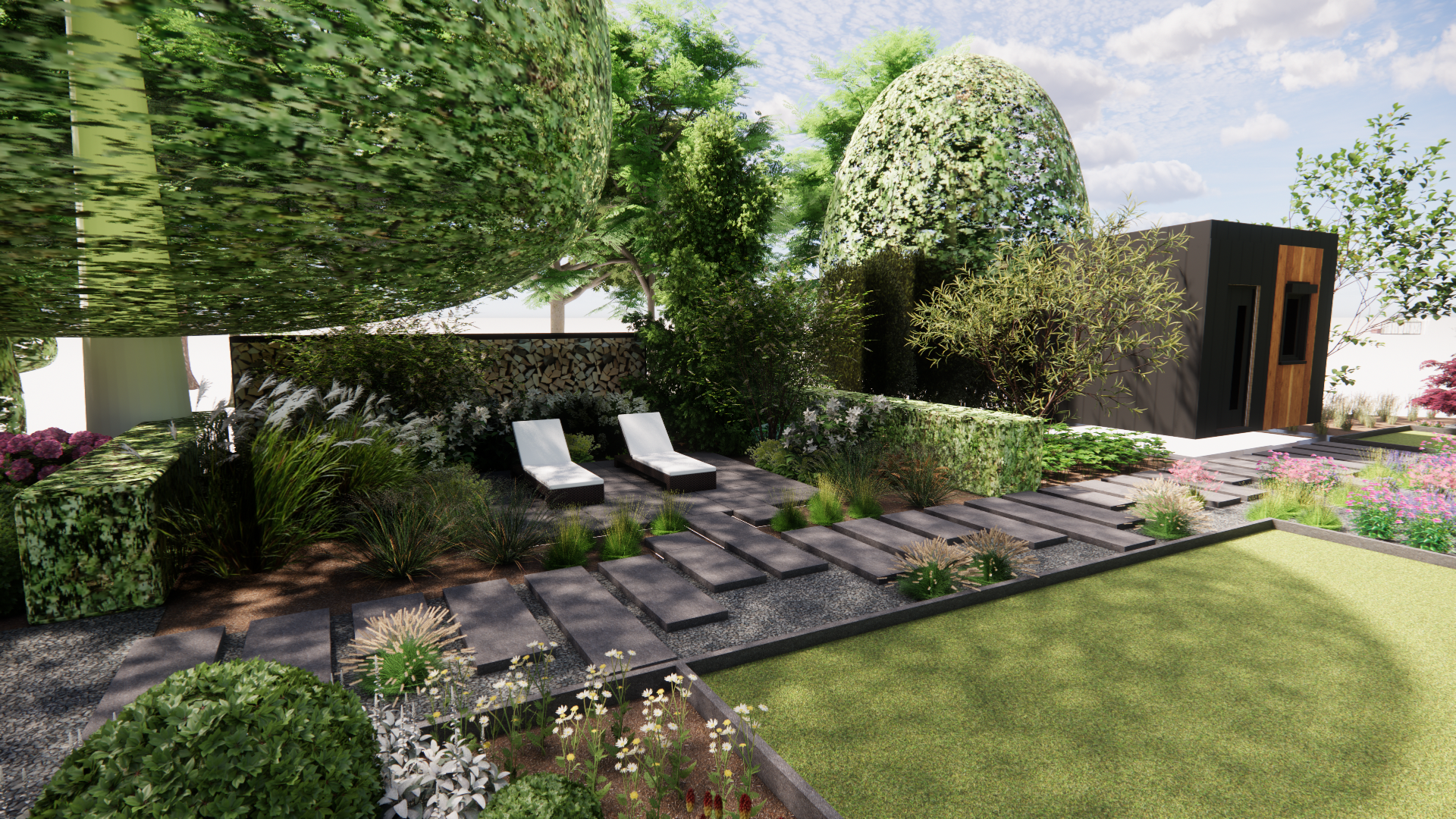 Koncepcja zakłada stworzenie ogrodu naturalnego, w którym chce się przebywać. Główne cele, które zostały zrealizowane w koncepcji to stworzenie zagajnika